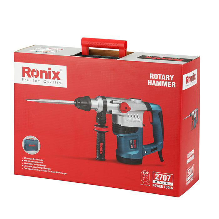 مناسب استفاده در 3 حالت؛ سوراخکاری، سوراخکاری ضربه ای و تخریب دارای سیستم کلاچ ایمنی برای افزایش ایمنی و طول عمر دستگاه موتور پرقدرت 1500 وات با انرژی 4.5 ژول مجهز به سیستم ابزارگیر چهار شیار سبک با عملکرد قدرتمند به همراه قلم های چهار شیار مجهز به گیربکس صنعتی دارای کلید ضد غبار