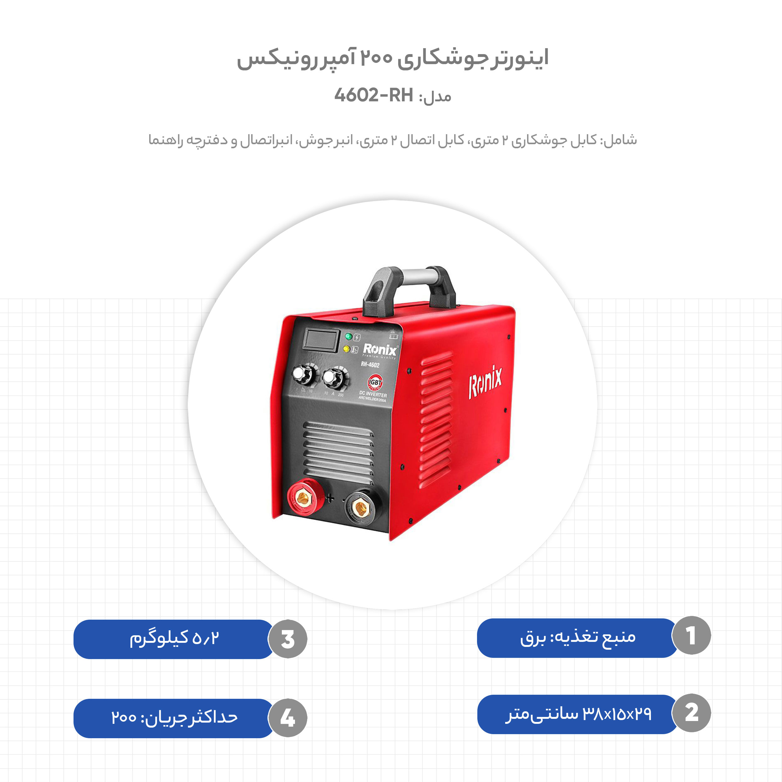در طراحی و ساخت اینورتر جوشکاری 4602-RH رونیکس، جریان خروجی واقعی، کیفیت جوش و پیوستگی و مداومت در جوشکاری مورد توجه قرار گرفتهاند. IGBT مورد استفاده در این دستگاه، با قابلیت عبور پیوستهی جریان 60 آمپری در دمای 100 درجهی سانتیگراد، قابلیت جوشکاری پیوسته و دائم را تضمین میکند. این سوئیچ الکترونیکی توان بالا، موجب افزایش کیفیت جوش و کارایی بیشتر در عملکرد دستگاه میشود. افزونبراین، مدارهای محافظتی با طراحی استاندارد، نقش مهمی در سهولت استفاده و افزایش طول عمر دستگاه دارند. در اینورتر جوشکاری 200 آمپر پاور پلاس 4602-RH رونیکس، در صورت اتصال کوتاه الکترود به قطعهی کار، با قطع جریان خروجی از آسیب به دستگاه جلوگیری میشود. همچنین، اگر جریان عبوری بیشتر از حد استاندارد باشد، مدار محافظ جریانی موجب اصلاح و یا قطع جریان خروجی میشود. در این دستگاه اینورتر، با استفاده از مقاومتهای حرارتی دقیق، میزان دمای عناصر قدرت بررسی شده و در صورت افزایش بیش از حد دما، جریان خروجی قطع میشود تا اینورتر خنک شود. در اینورتر 4602-RH رونیکس، مدار تنظیم عمق نفوذ جوش (Arc Force) موجب کنترل نفوذ جوش و پایداری قوس شده و از سوراخشدن قطعهی کار جلوگیری میکند. قابلیت استارت گرم، سیستم خنککاری کارآمد، کاربرد قطعات باکیفیت در ساخت دستگاه و طراحی کمحجم و سبکوزن بدنه، از دیگر مزایای بیشمار اینورتر 4602-RH هستند.